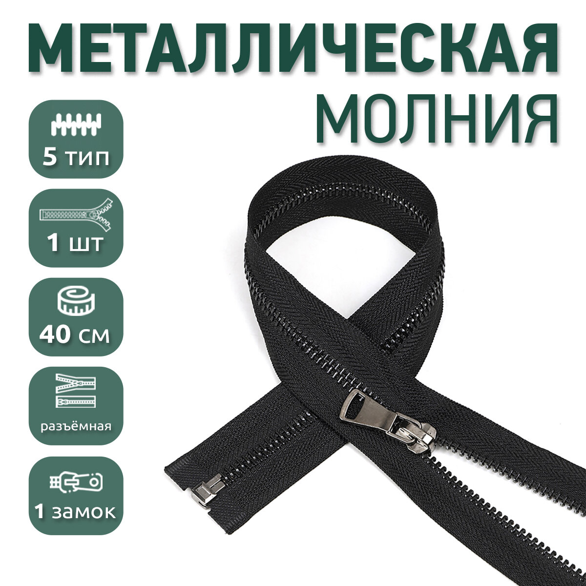Молния разъемная MaxZipper мет. №5 черный никель шлиф. звено, 40 см цв. F322 черный уп.1шт