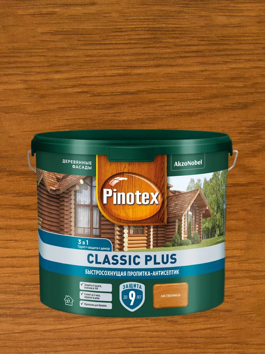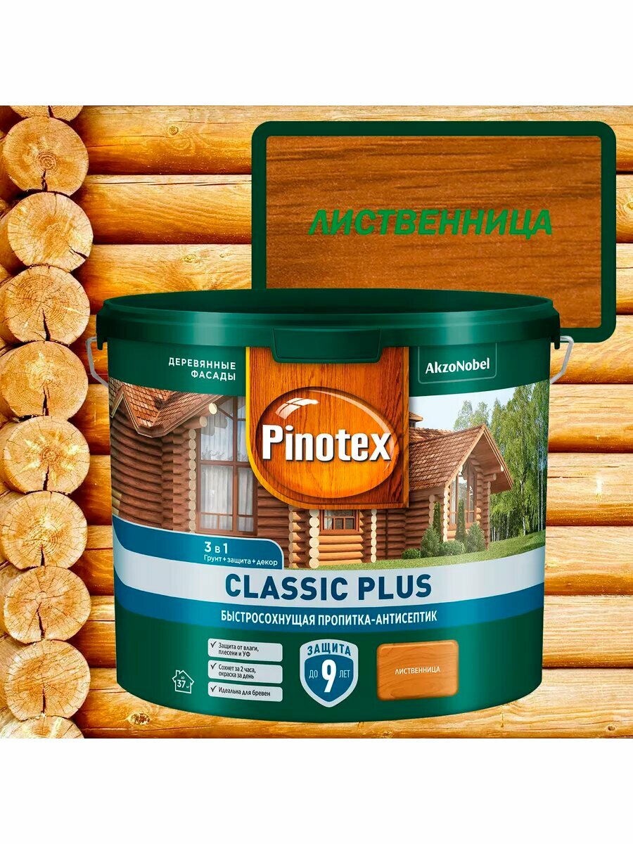 PINOTEX CLASSIC PLUS пропитка-антисептик быстросохнущая 3 в 1 лиственница 9л