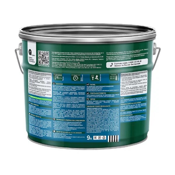 | Дополнительная информация | эксплуатацию окрашенной поверхности начинайте не ранее чем через 14 дней после окрашивания, расход на один слой: строганая древесина до 15 м²/л, пиленая древесина до 12 м²/л; упаковка товара может быть как металлическая, так и пластмассовая |