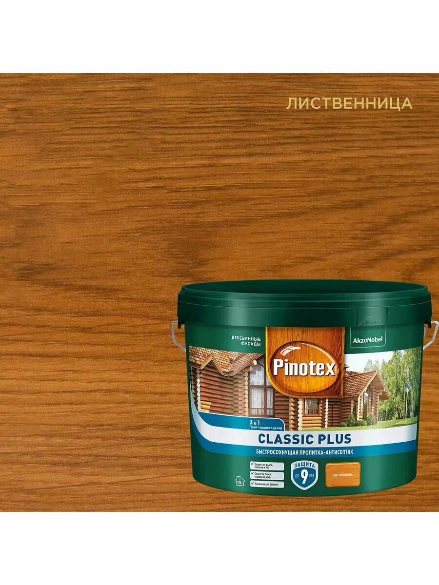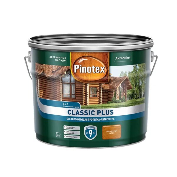 Купить PINOTEX CLASSIC PLUS пропитка-антисептик быстросохнущая 3 в 1 лиственница 9л