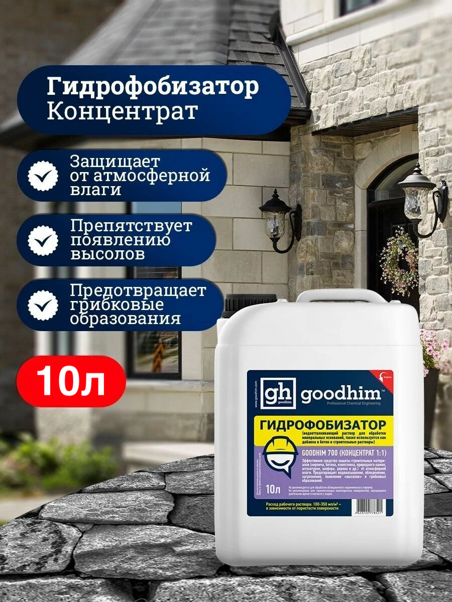 Goodhim Водоотталкивающая пропитка для камня (гидрофобизатор) с антисептическим действием 700 - 10л Концентрат 1:1 78538