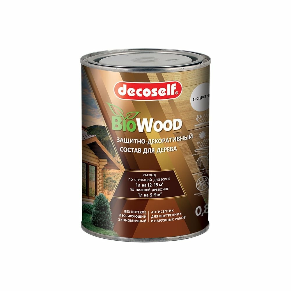 Декоселф декоративная пропитка по дереву бесцветная (0,8л) / DECOSELF ProNatur защитно-декоративный антисептик для дерева бесцветный (0,8л)
