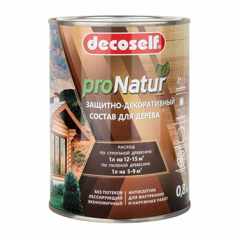 Декоселф декоративная пропитка по дереву бесцветная (0,8л) / DECOSELF ProNatur защитно-декоративный антисептик для дерева бесцветный (0,8л)