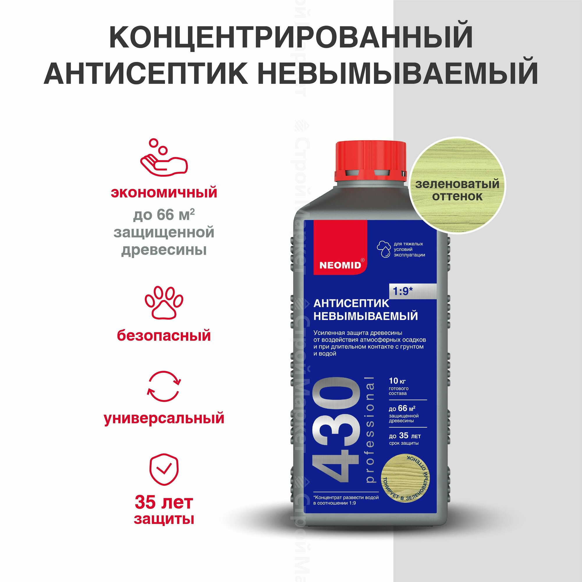 NEOMID 430 ECO антисептик невымываемый, защита до 35 лет, концентрат 1:9, зеленый (1кг)