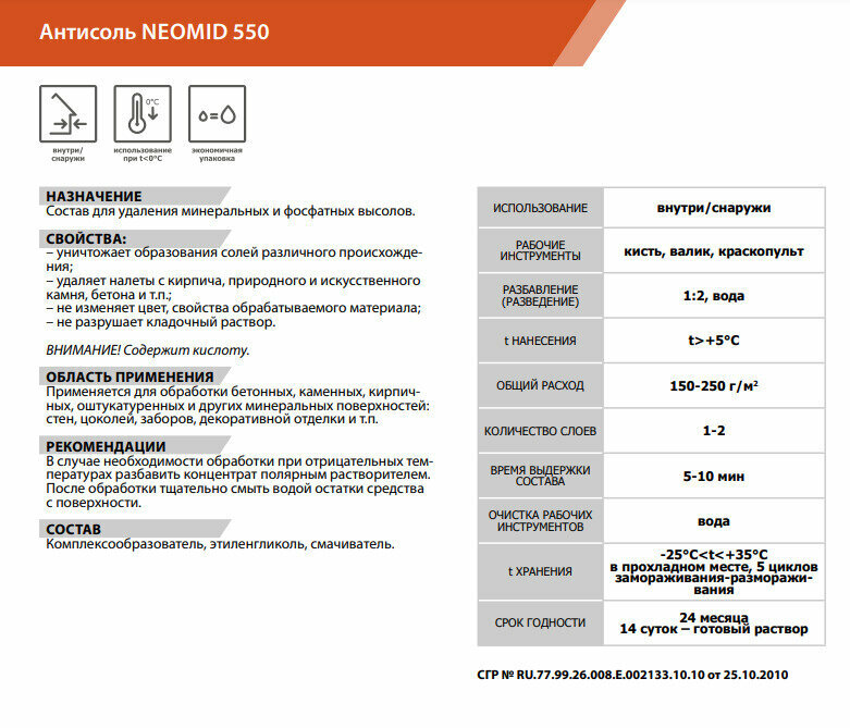 Неомид 550 Антисоль средство для удаления высолов концентрат 1:2 (5л) / NEOMID 550 Антисоль средство для удаления высолов концентрат 1:2 (5л) интересное: