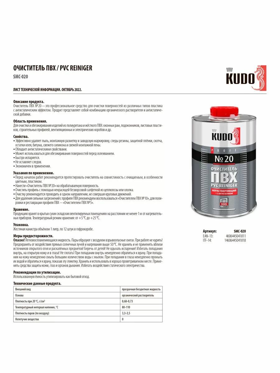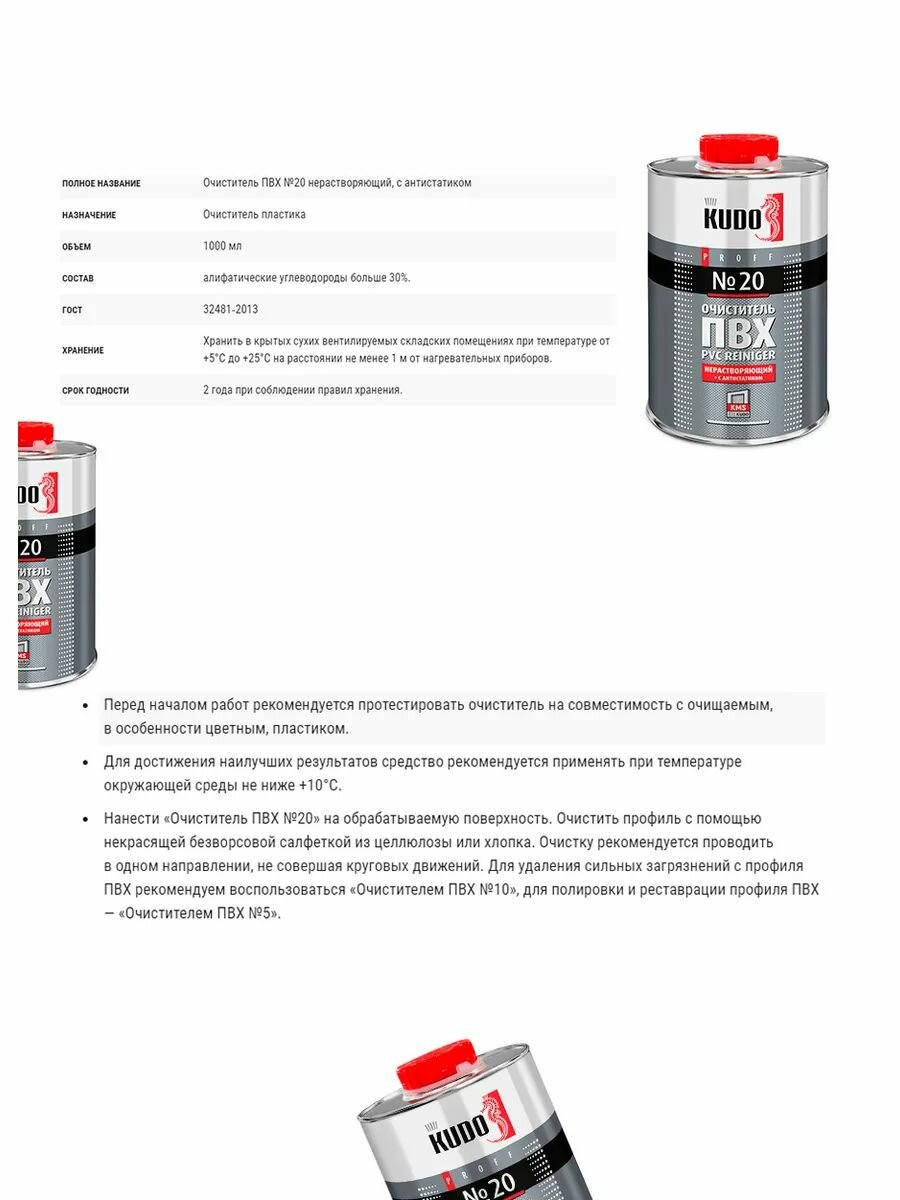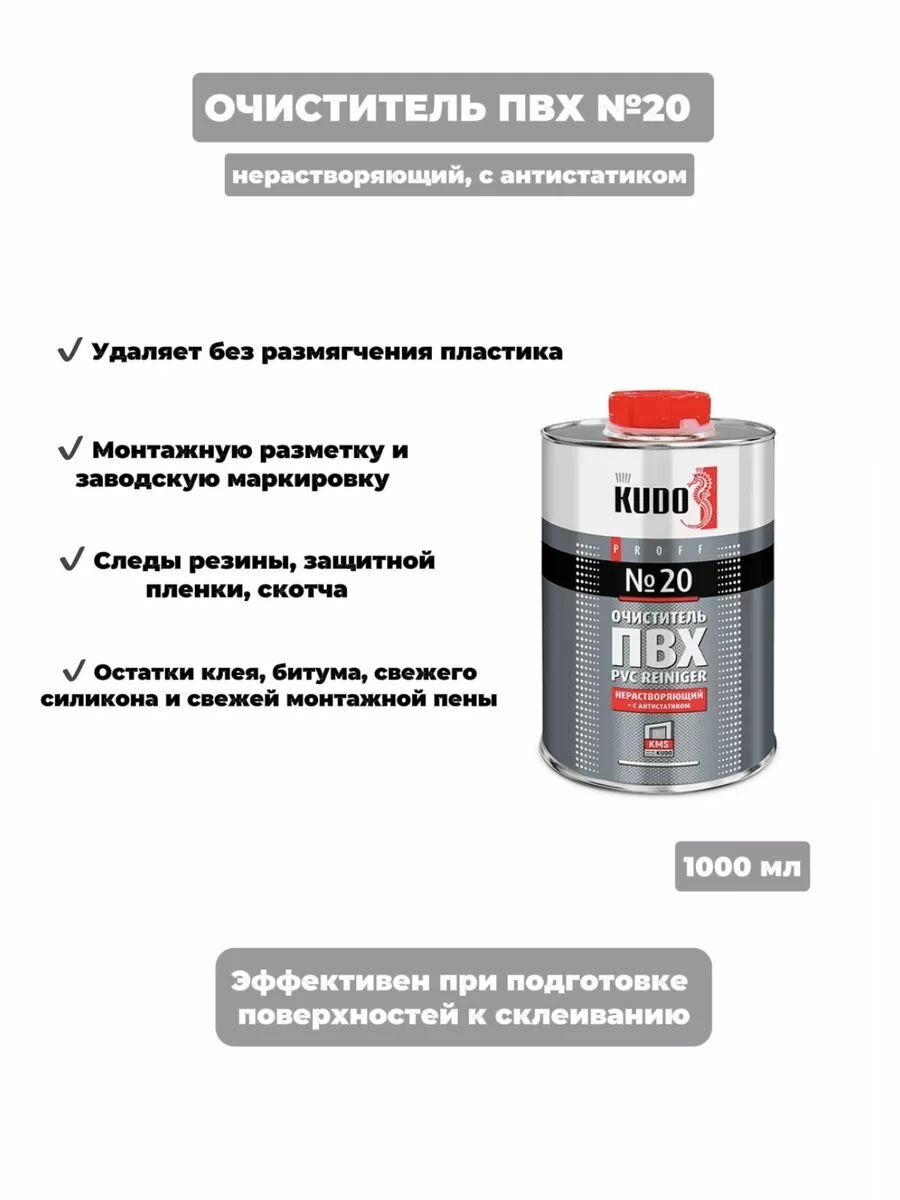 Очиститель ПВХ №20 Kudo , нерастворяющий, с антистатиком, 1000 мл интересное: