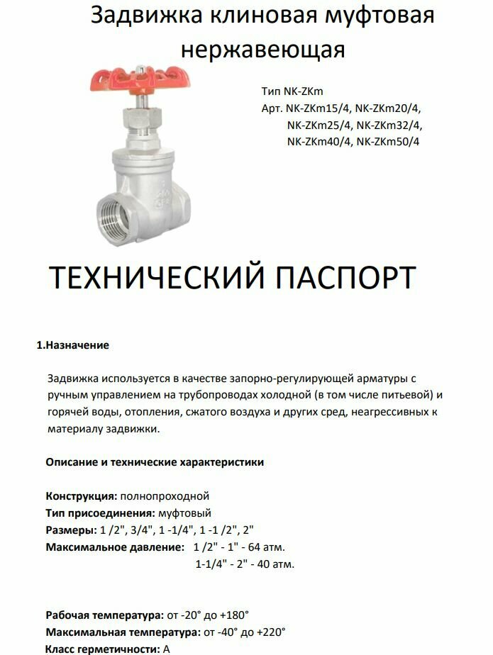 Ниже Вы можете прочитать отзывы на Задвижка клиновая муфтовая нержавеющая, AISI304 DN32 (1_1/4"), (CF8), PN40, ознакомится с подробными характеристиками, посмотреть интересные обзоры и фотографии на Задвижка клиновая муфтовая нержавеющая, AISI304 DN32 (1_1/4"), (CF8), PN40.