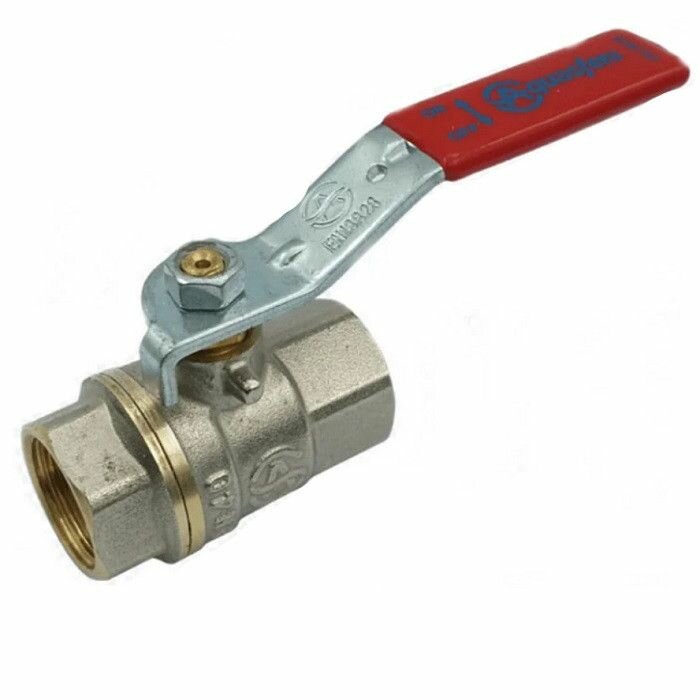 Кран шаровой латунь никель 1001 Euro Ду 25 Ру25 ВР полнопроходной рычаг красный Aquasfera 1001-03 .