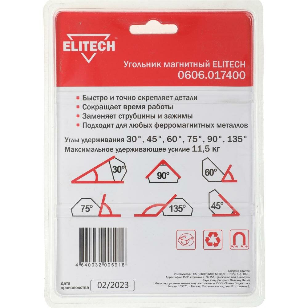 Магнитный уголок ELITECH усилие max -35кг углы-30/45/60/75/90/135