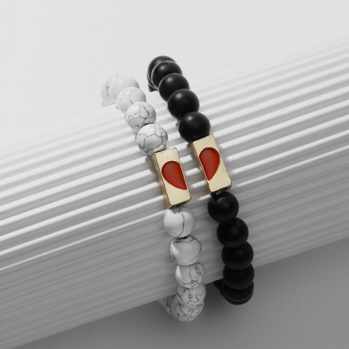 Браслеты "Неразлучники" сердце с бусинами, цвет чёрно-белый, шар №8 ,d 6,5см интересное: