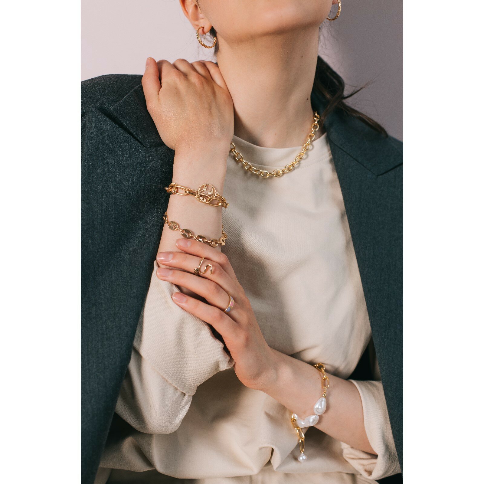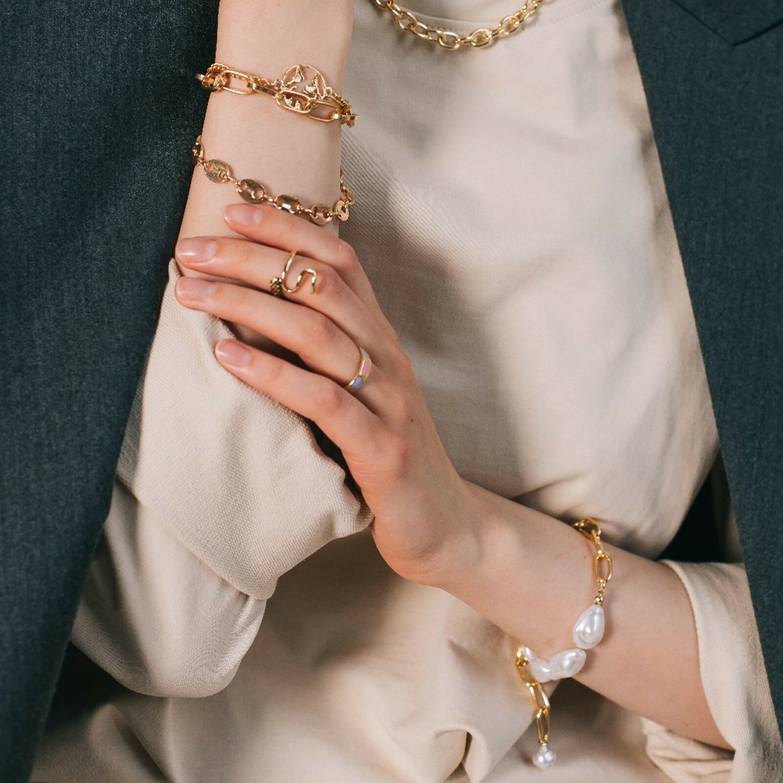 Браслет жемчуг "Барокко" цепь, цвет белый в золоте,L=18см 5049571 интересное: