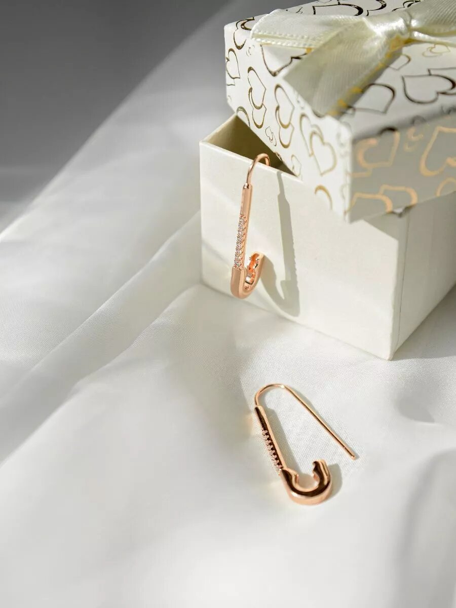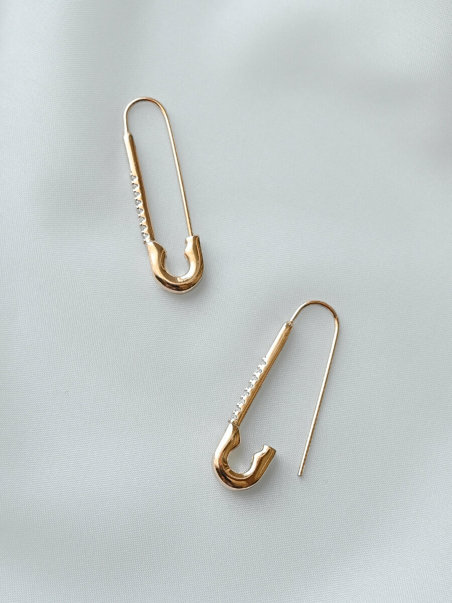СохранитьСерьги бижутерия длинные булавки, как серьги золотые 585, сережки булавочки позолоченные с камнями из медицинского сплава, ювелирный, родирование интересное: