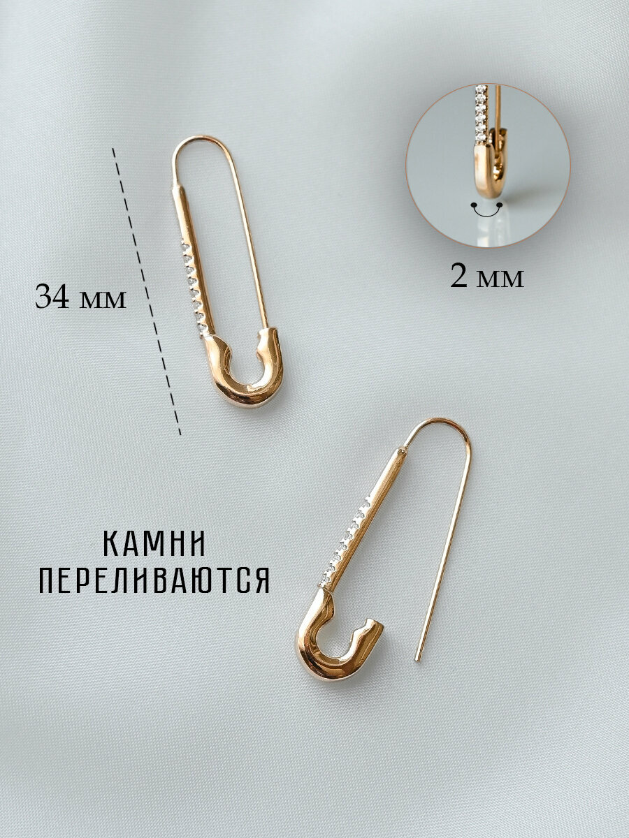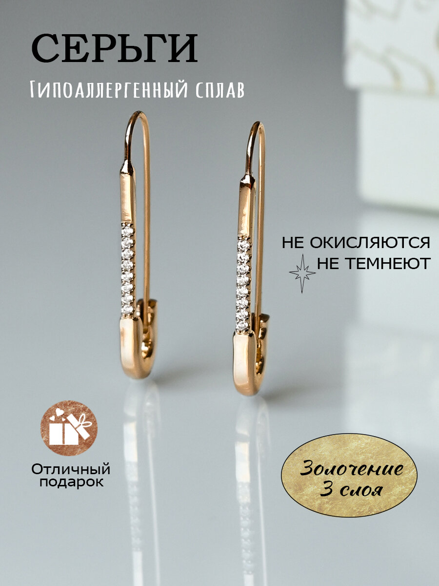 Купить Серьги бижутерия длинные булавки, как серьги золотые 585, сережки булавочки позолоченные с камнями из медицинского сплава, ювелирный, родирование