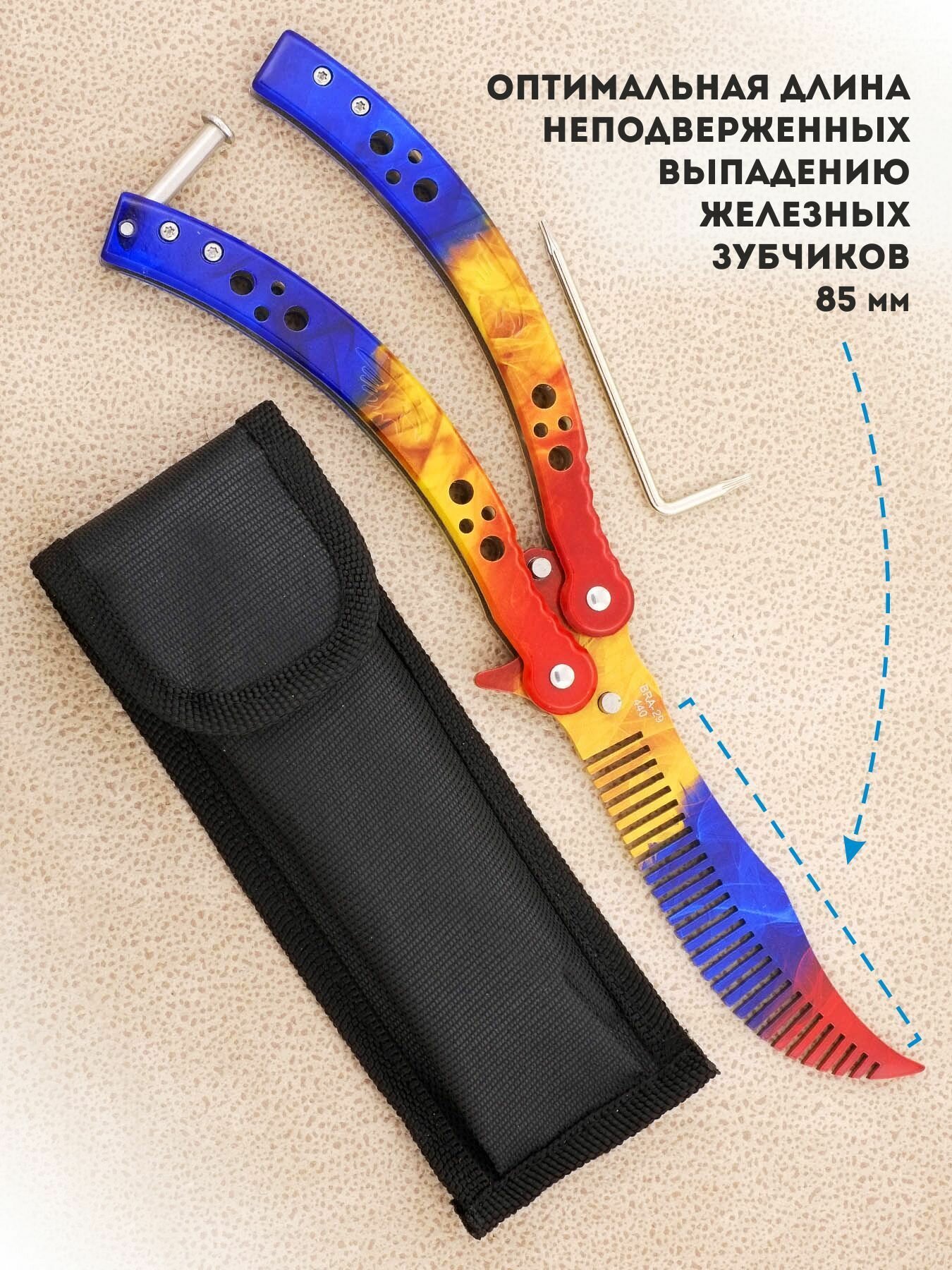 | В комплекте | Расческа нож - бабочка, чехол, ключик для болтиков, упаковка |