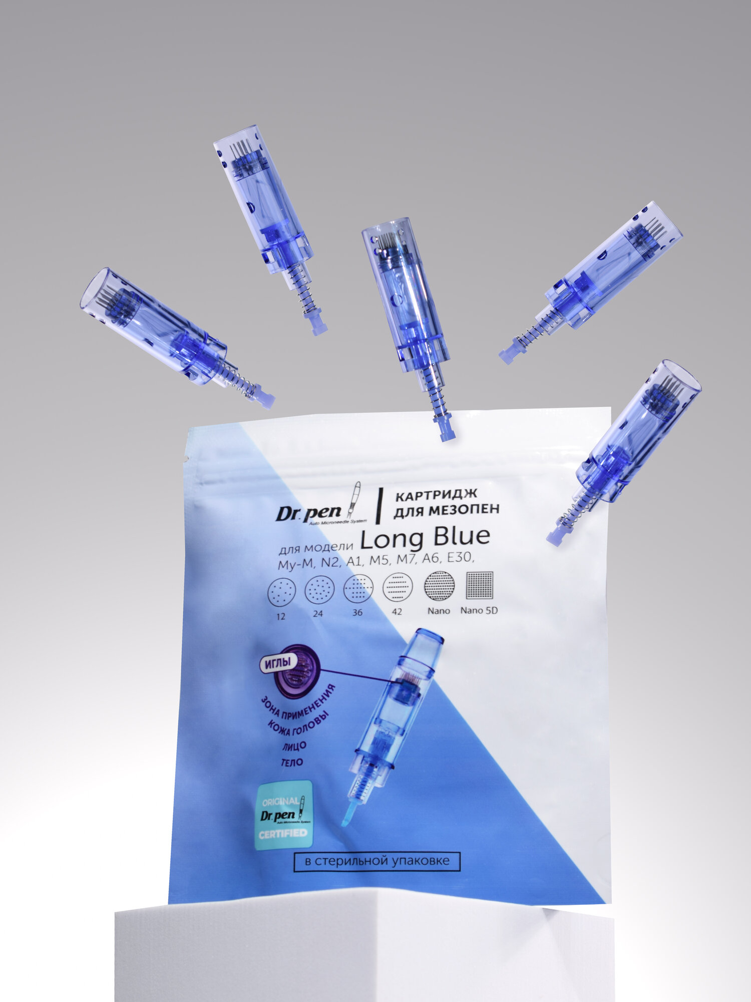 Картридж для дермопен Dr.pen на 36 игл / насадка для аппарата дермапен / синий длинный, 5 шт интересное: