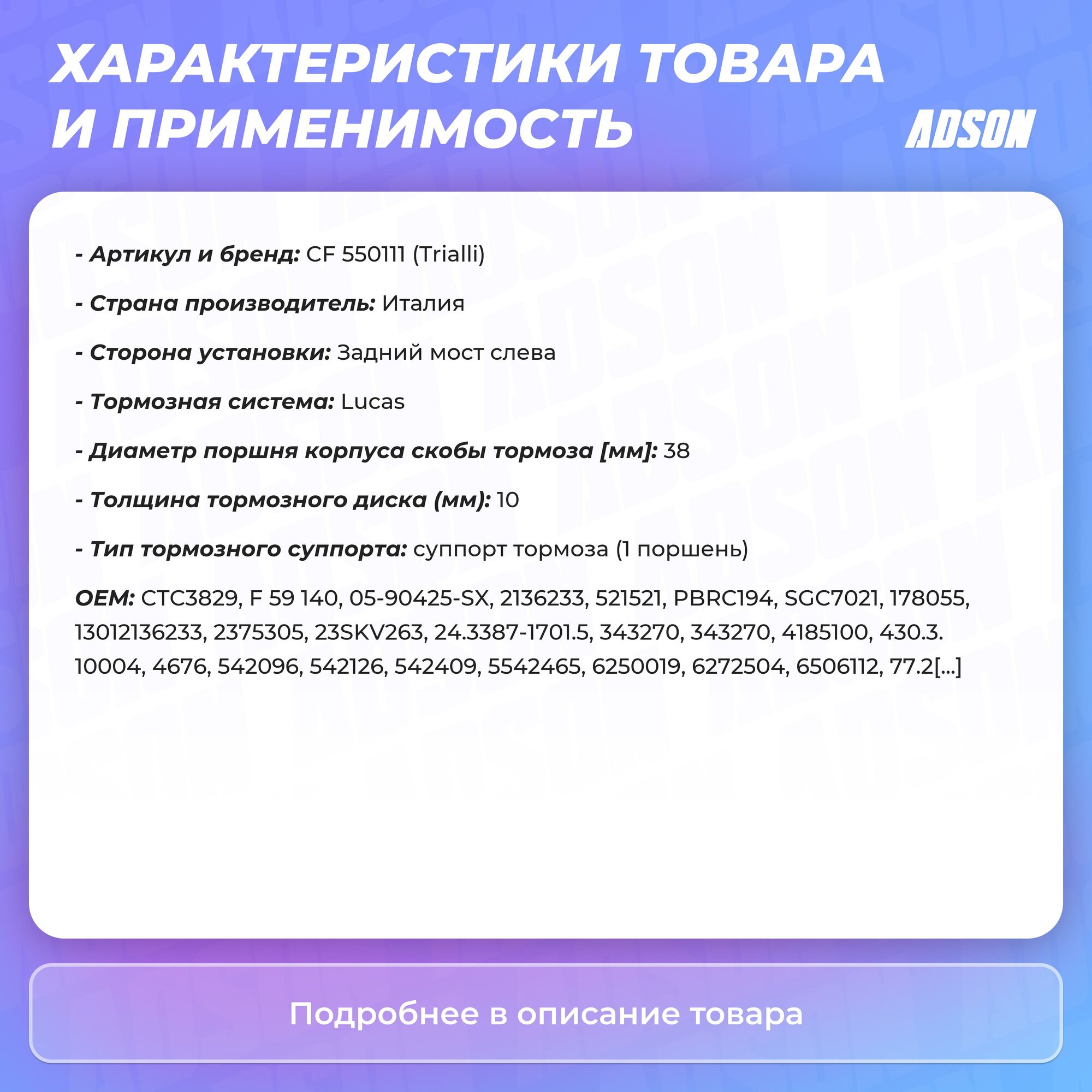 Trialli суппорт торм. для а/м opel astra h (04-)/astra g (98-) зад. лев. d=38, диск 264/10 (cf 550111) cf550111