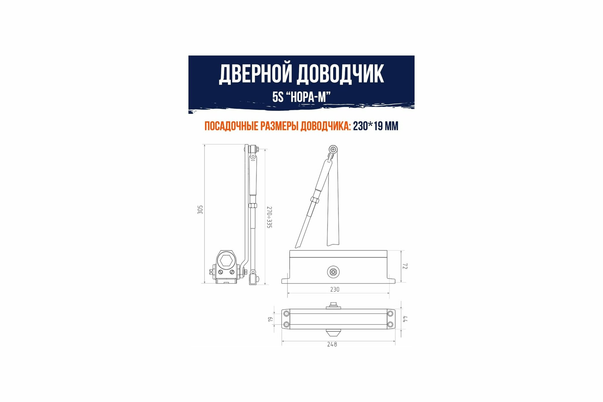 Доводчик Нора-М №5S (160кг) - чёрный - морозостойкий