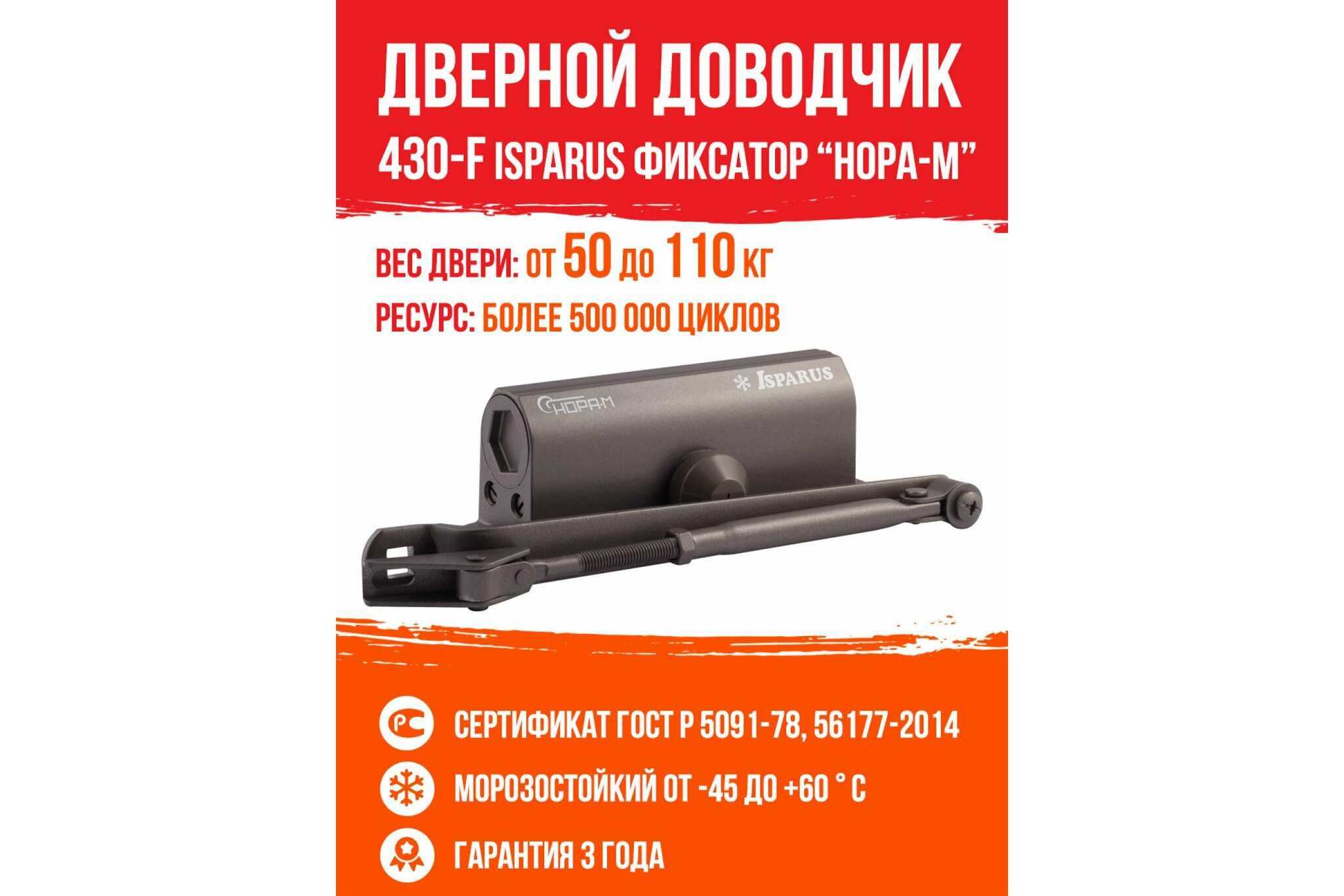 Нора-м Доводчик дверной морозостойкий Isparus 430F, от 50 до 110 кг, графит 18404