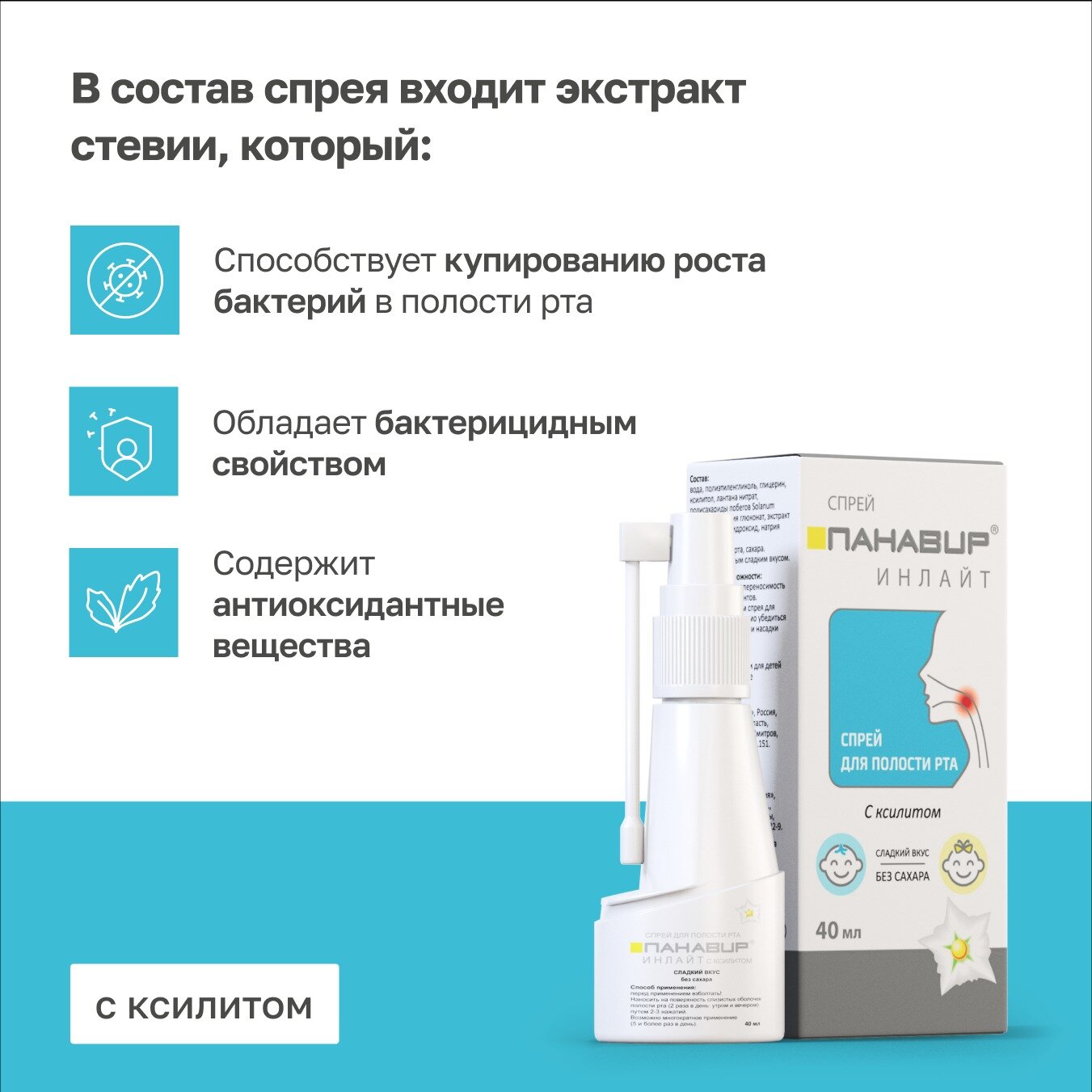 СохранитьПанавир Инлайт с ксилитом спрей д/полости рта (без сахара) 40мл интересное: