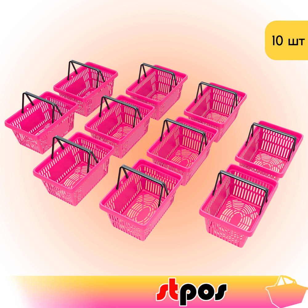 СохранитьНабор Корзин покупательских пластиковых ROCK с 2 черными ручками 20 л, усиленных, Фуксия - 10 шт интересное: