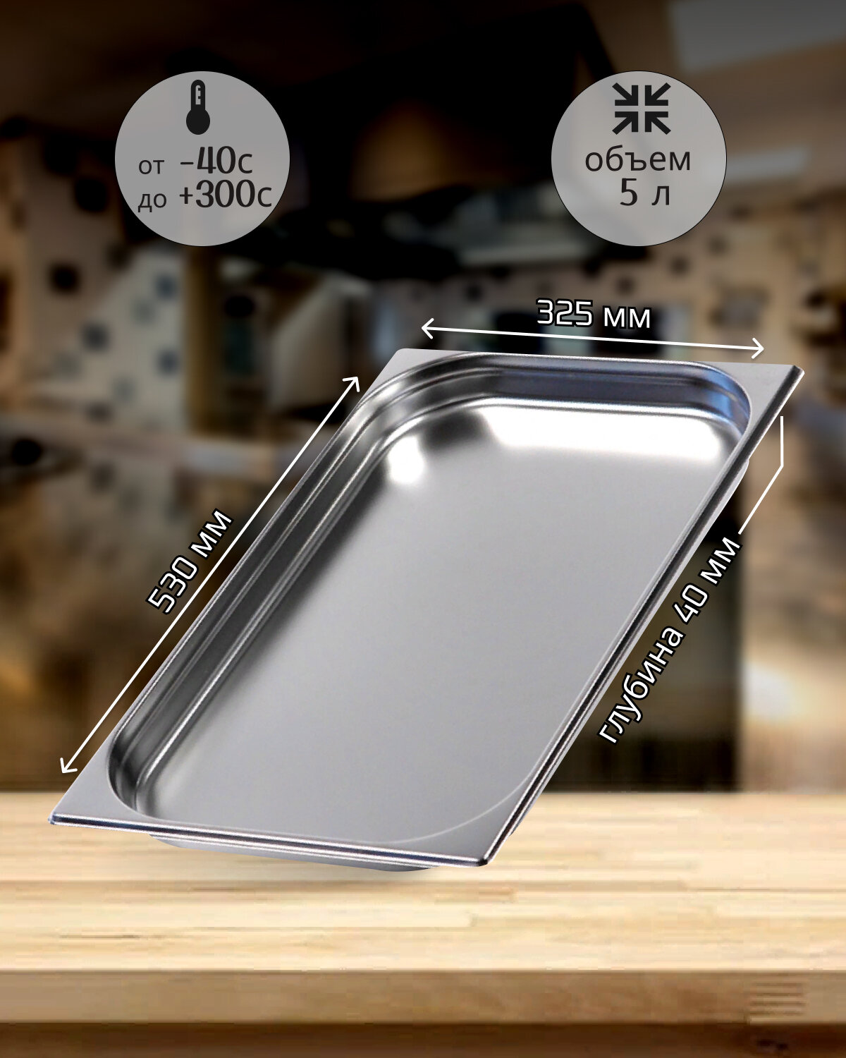 Гастроемкость LUXSTAHL нерж.сталь, GN 1/1, 53х32,5х4см, (га02), 1 шт. интересное: