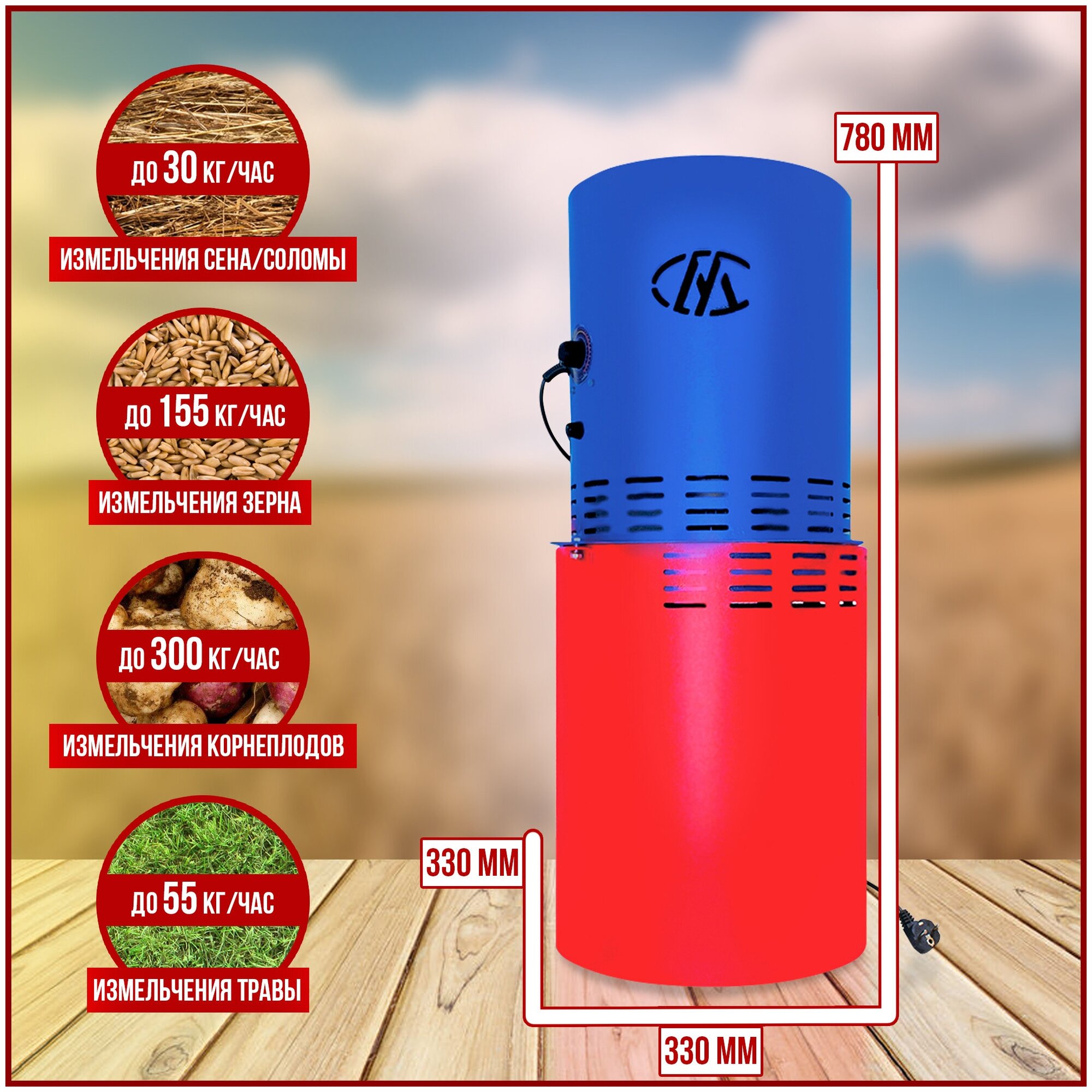 Зернодробилка "Хрюша", 300 кг/ч, корм, зерно./В упаковке шт: 1