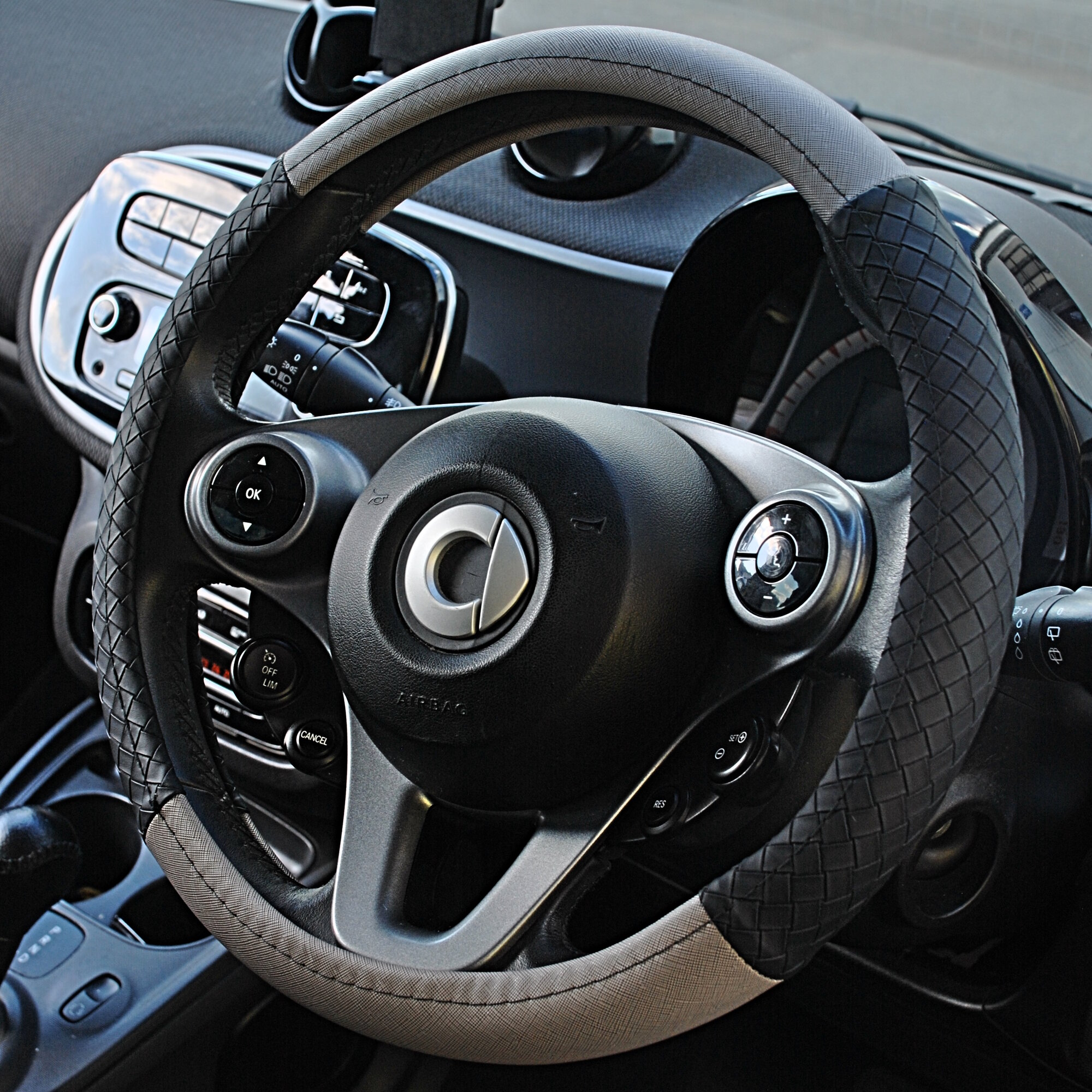 Оплетка на руль 37-39, A2DM из экокожи, косичка черная / гладкая серая интересное: