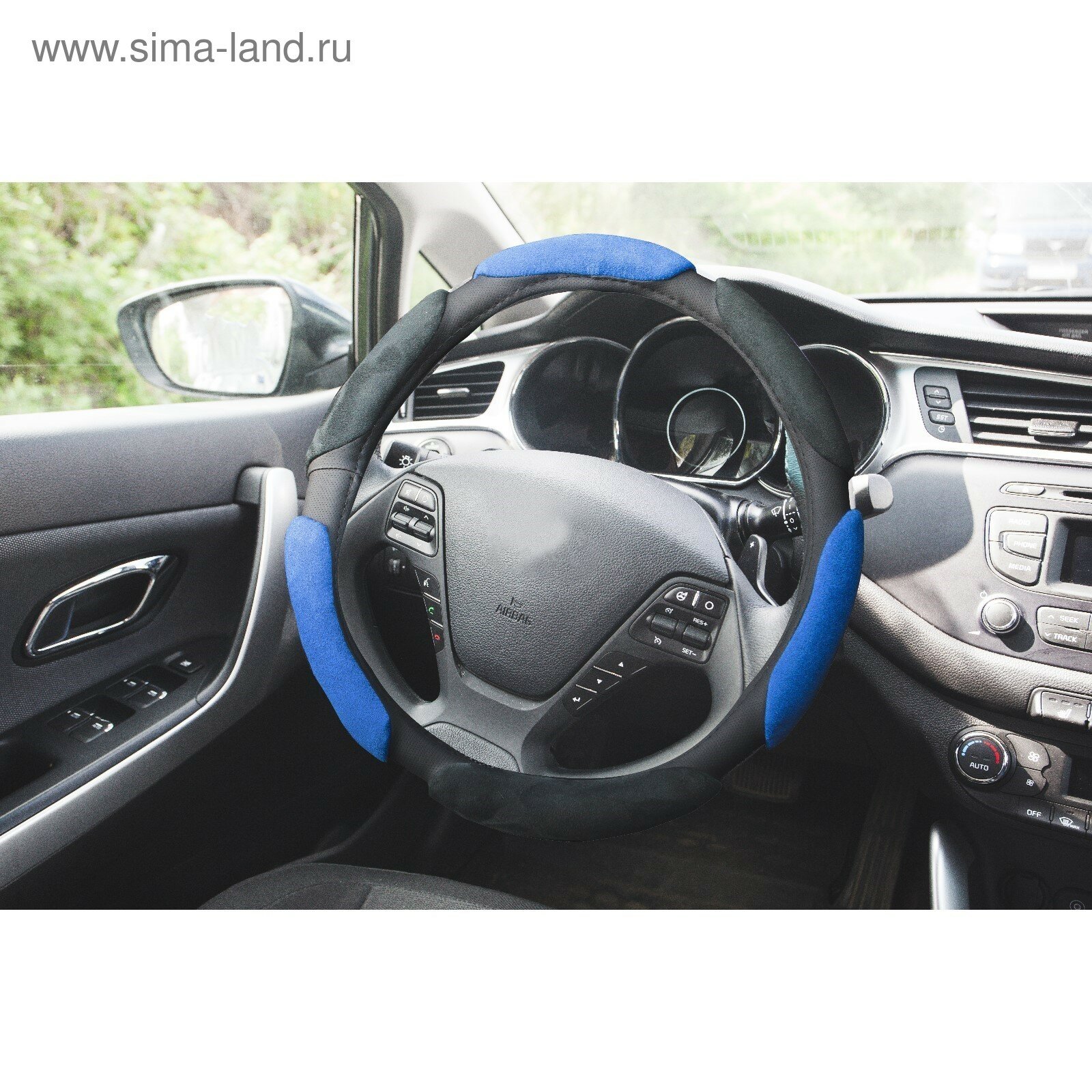 Оплетка на руль велюр, размер 38 см, чёрно-синий