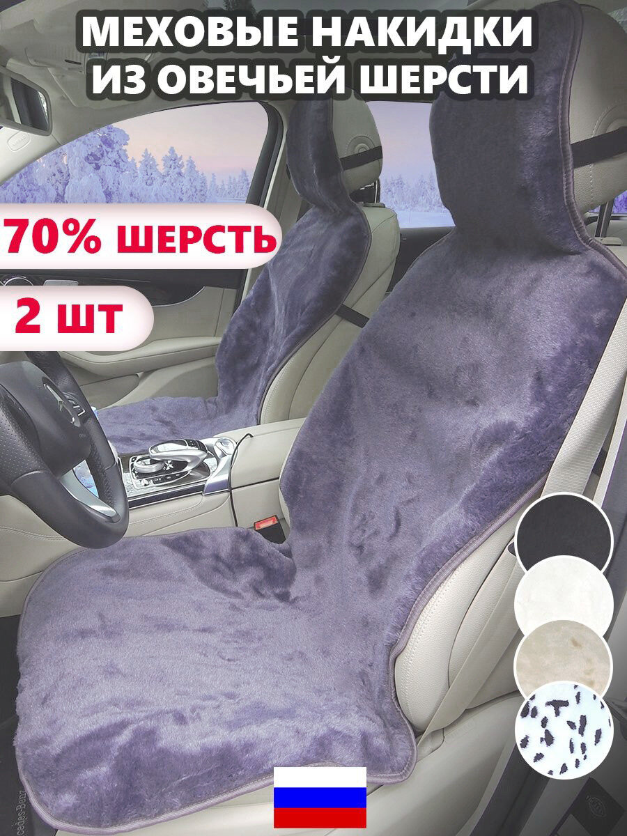 Автонакидки (2 шт.) из натуральной овечьей шерсти на сидения авто (универсальные)