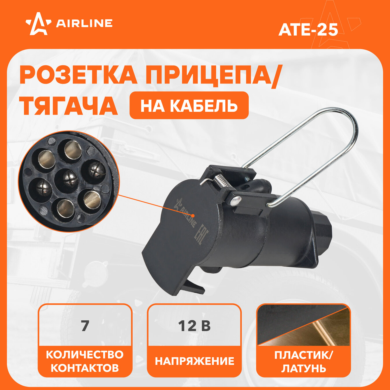 Розетка фаркопа 12В 7 контактов пластик (на кабель) ATE-25 AIRLINE интересное: