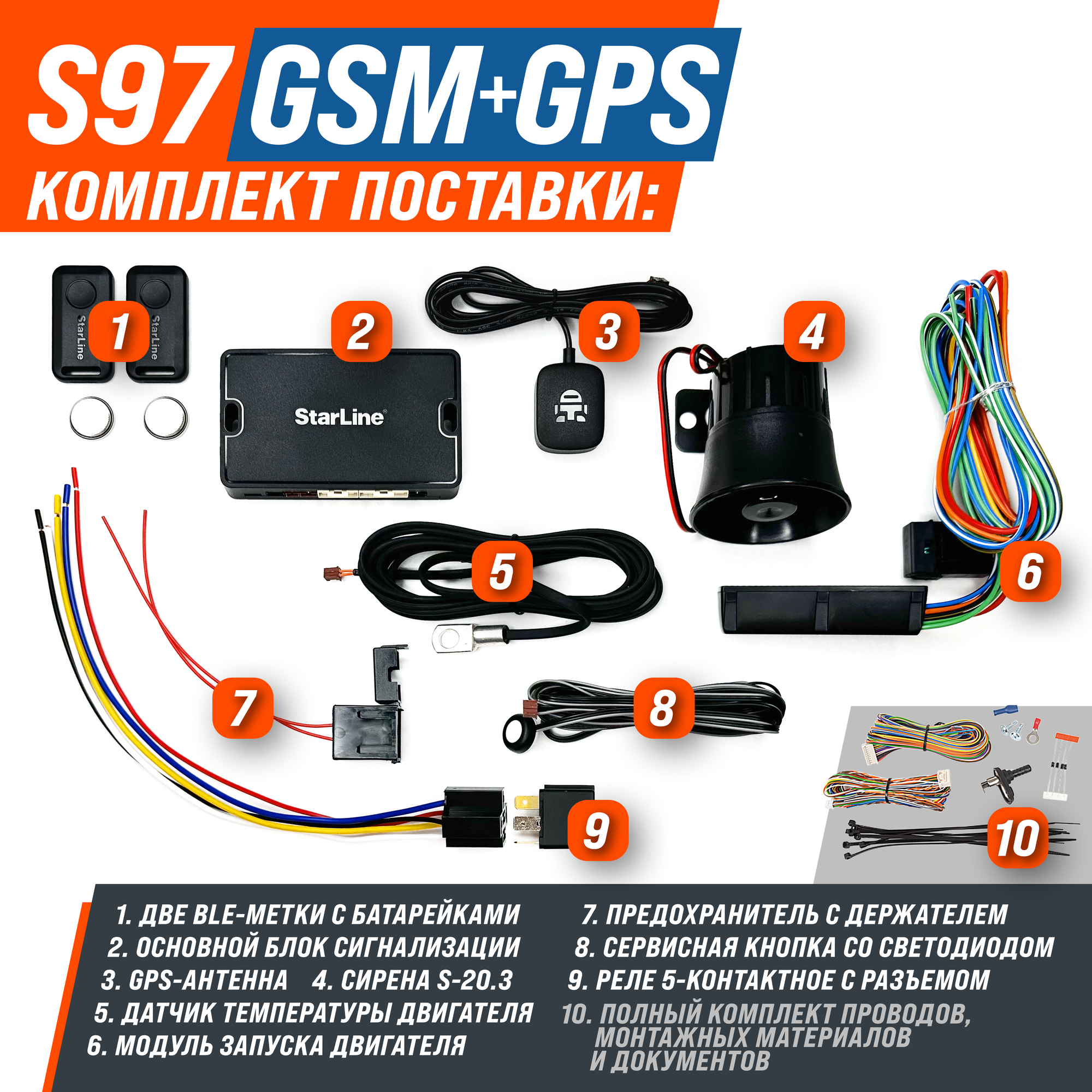 Купить Автосигнализация StarLine S97 CAN FD GSM+GPS (автозапуск, GSM, CAN-FD интерфейс, GPS, 2 метки)
