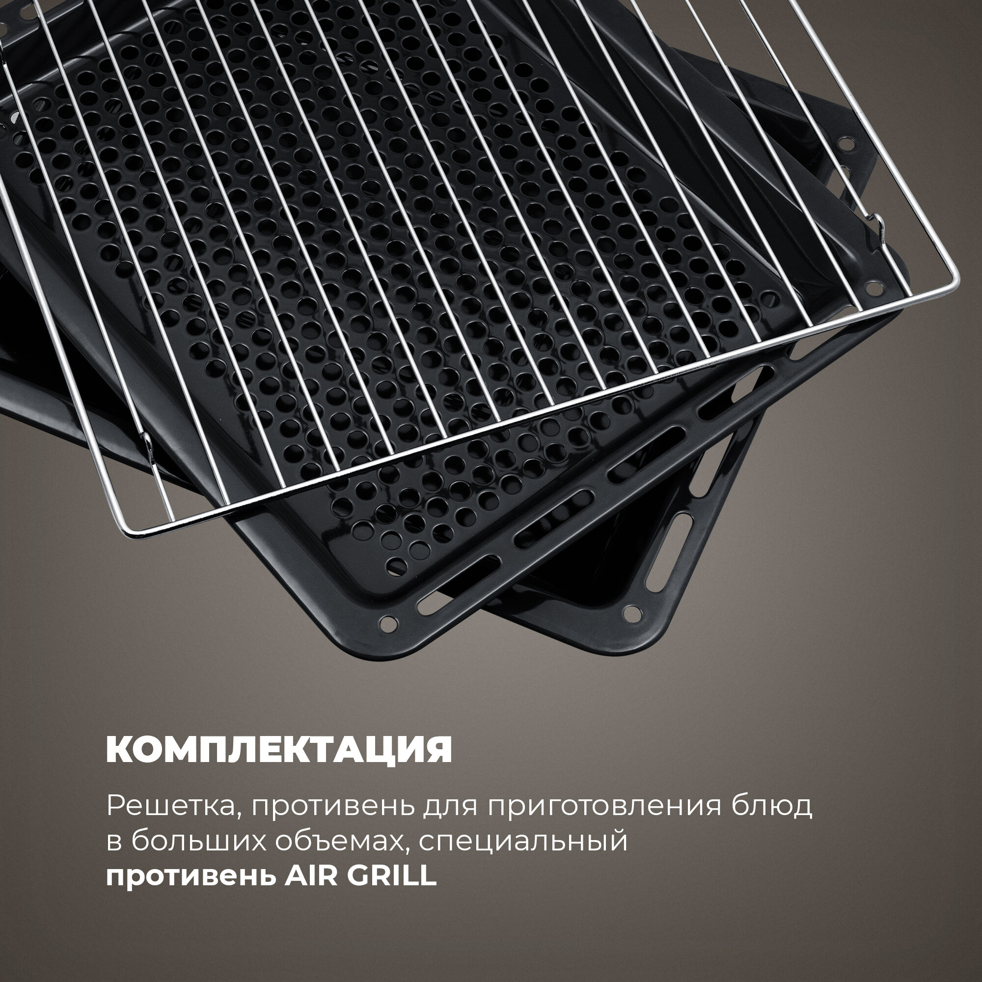 | Подробная комплектация | Перфорированный противень для AIR GRILL, глубокий противень с антипригарным покрытием, хромированная решётка |