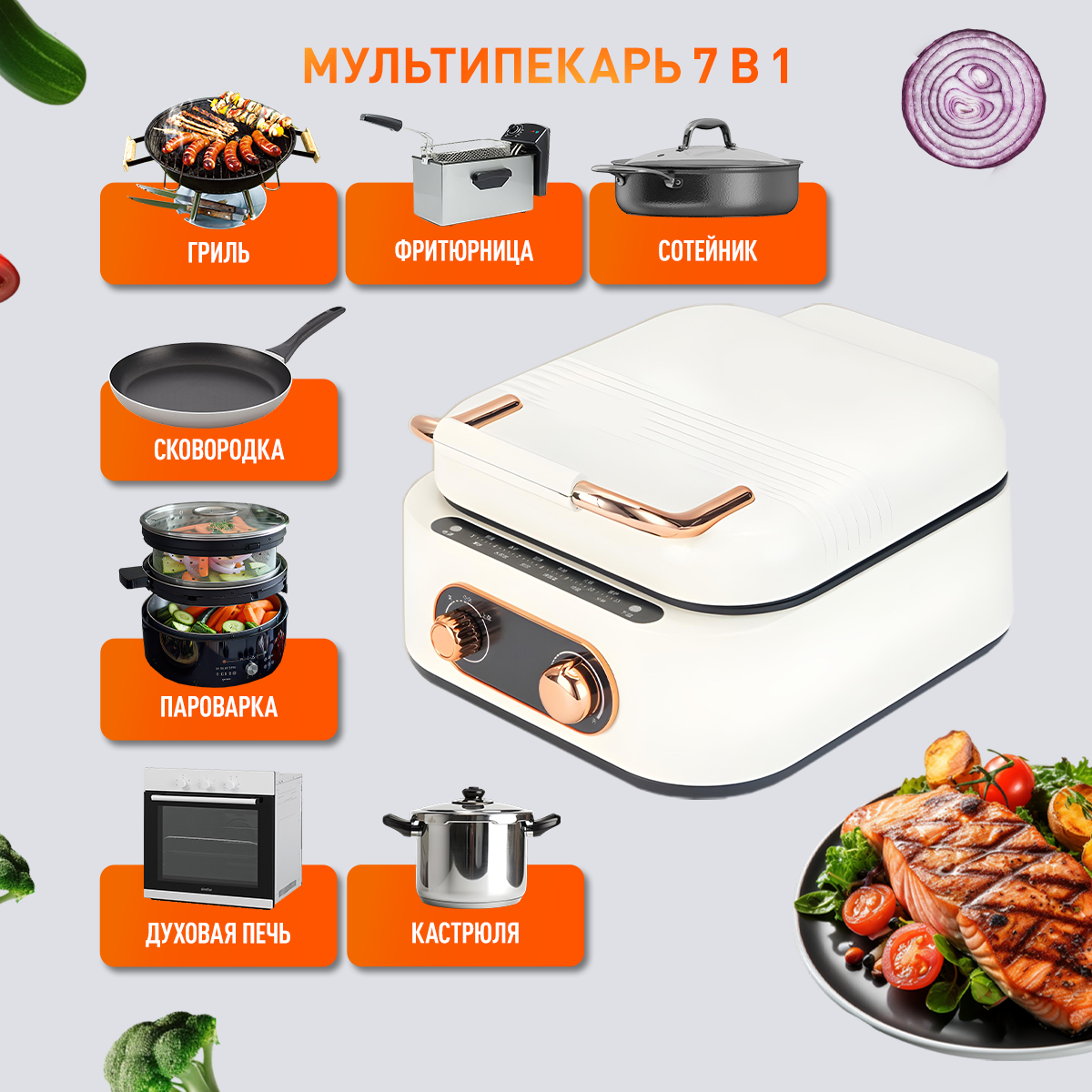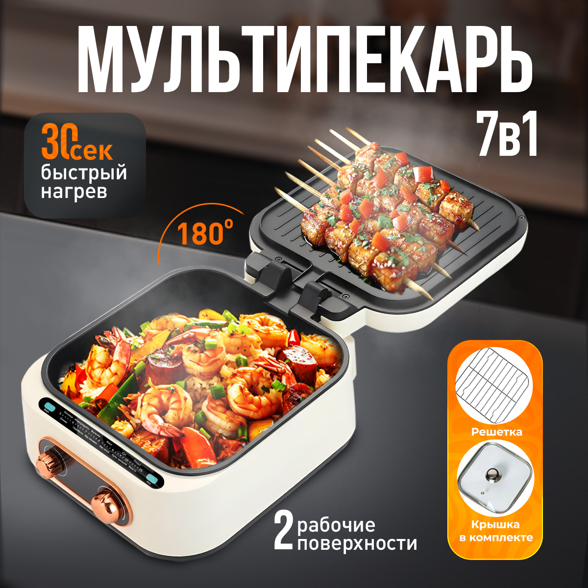 Мультипекарь кулинарная станция 7 в 1, аэрогриль, мультипечь гриль, гриль электрический, умный гриль KEEMALA интересное:
