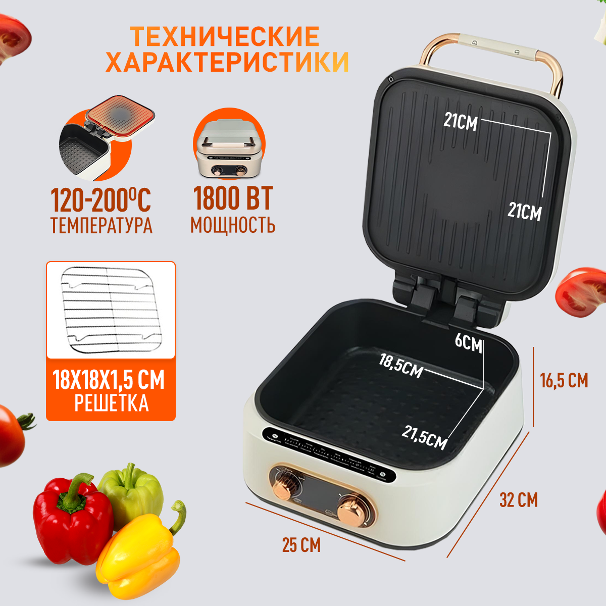 | Дополнительная информация | защита от короткого замыкания, верхний и нижний нагрев, автоматическое отключение, умный контроль температуры, защита от перегрева |