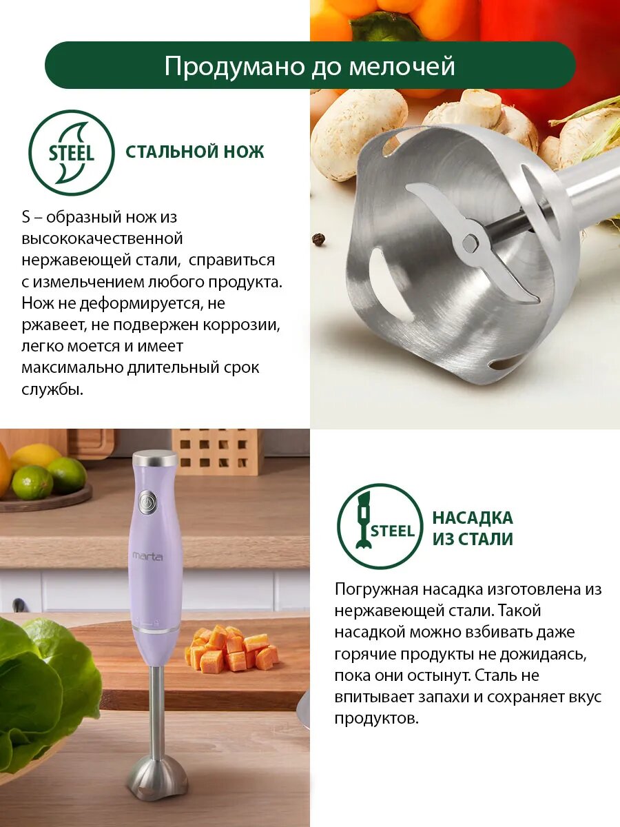 Блендер погружной кухонный комбайн MARTA MT-1562 зеленая яшма
