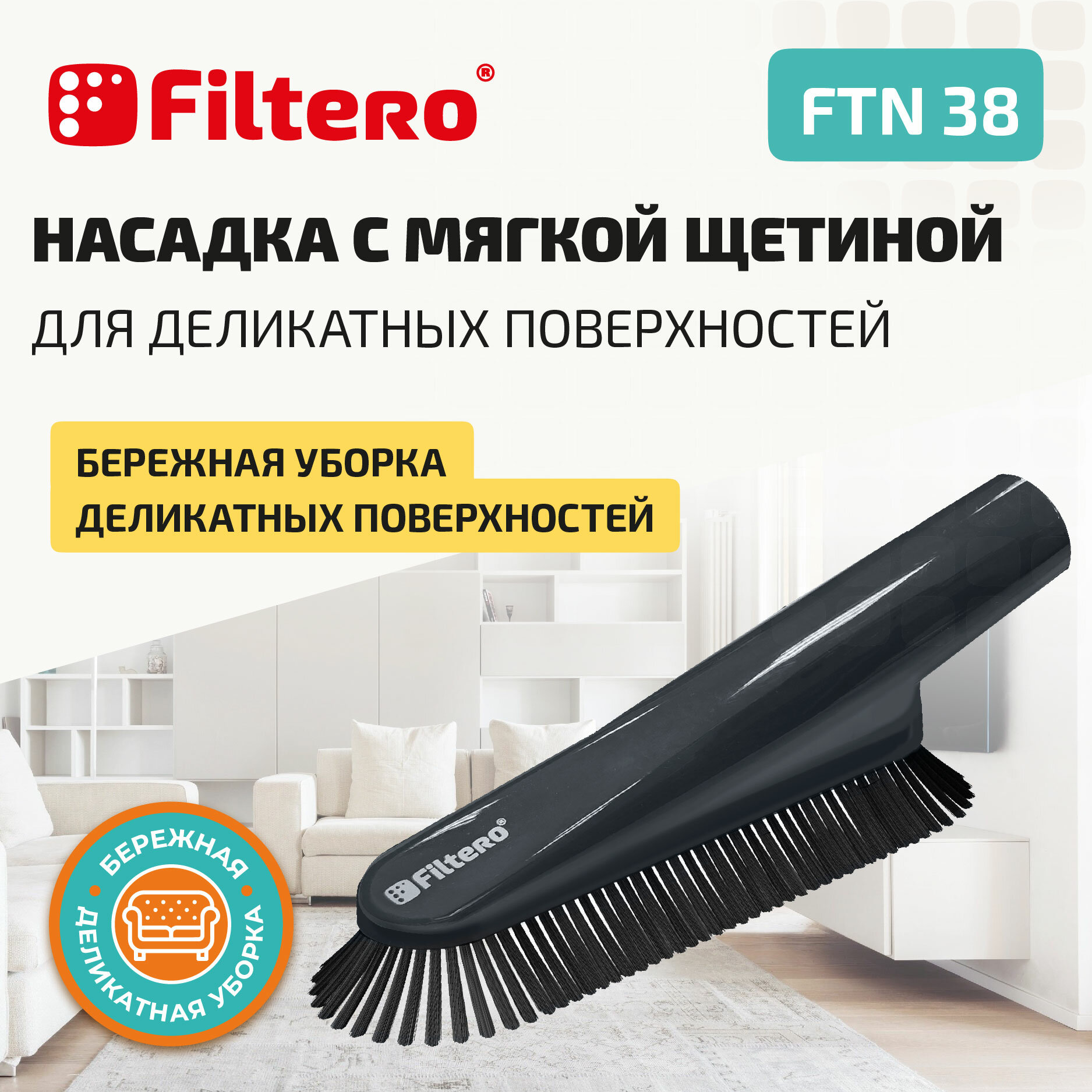Насадка с мягкой щетиной Filtero FTN 38 для деликатных поверхностей .