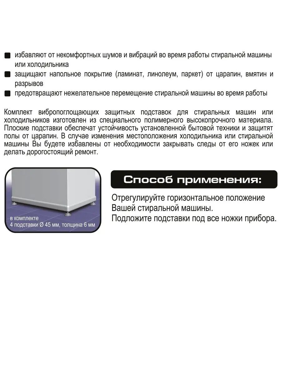 Антивибрационные подставки Topperr для стиральных машин и холодильников, тонкие, 4 шт 2848975 интересное: