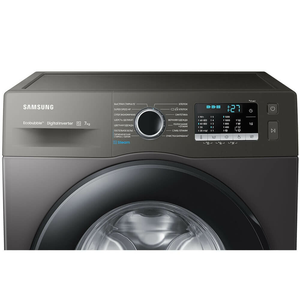 Узкая стиральная машина Samsung WW80AGAS21AXLP, 8 кг, с электронным управлением, инверторным мотором, технологией Eco Bubble, графит / черный