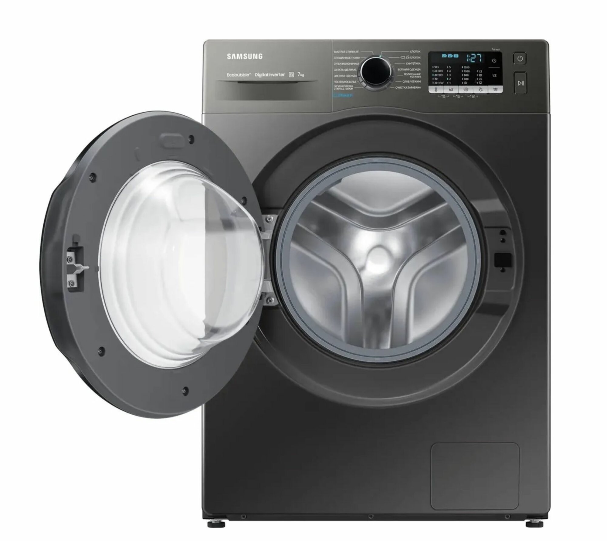 Узкая стиральная машина Samsung WW80AGAS21AXLP, 8 кг, с электронным управлением, инверторным мотором, технологией Eco Bubble, графит / черный