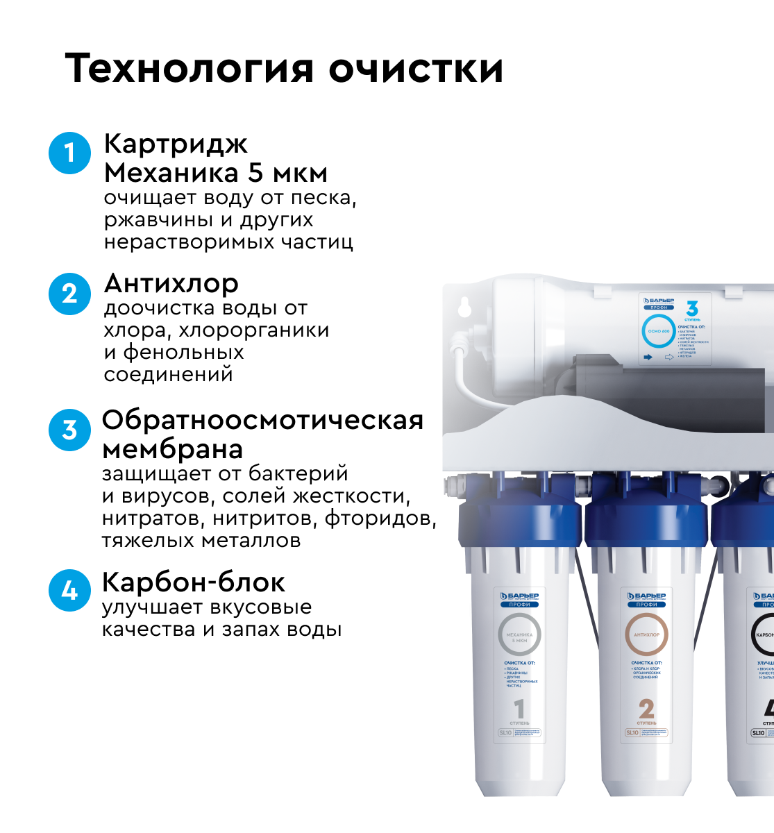БАРЬЕР профи осмо 600, безбаковый обратноосмотический фильтр, четырехступенчатый (с насосом) интересное: