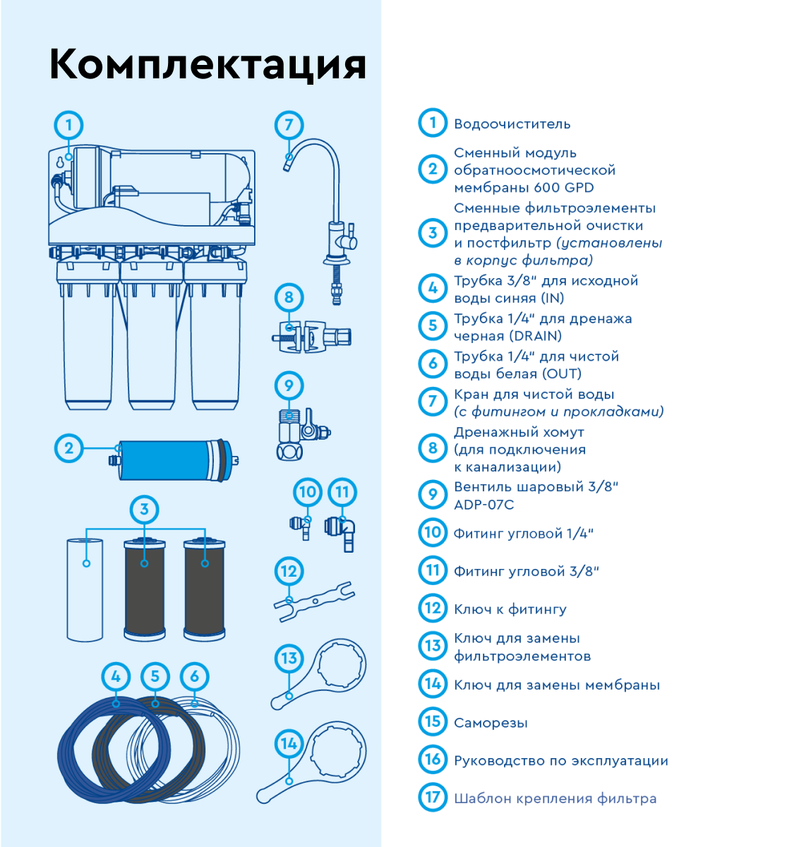 | Функции очистки | обратный осмос / очистка от бактерий / очистка от ржавчины / очистка от свободного хлора |