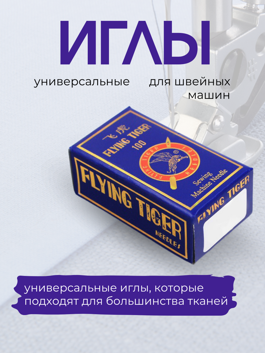 Иглы FLYING TIGER для бытовых швейных машин №100, 10 штук, универсальные