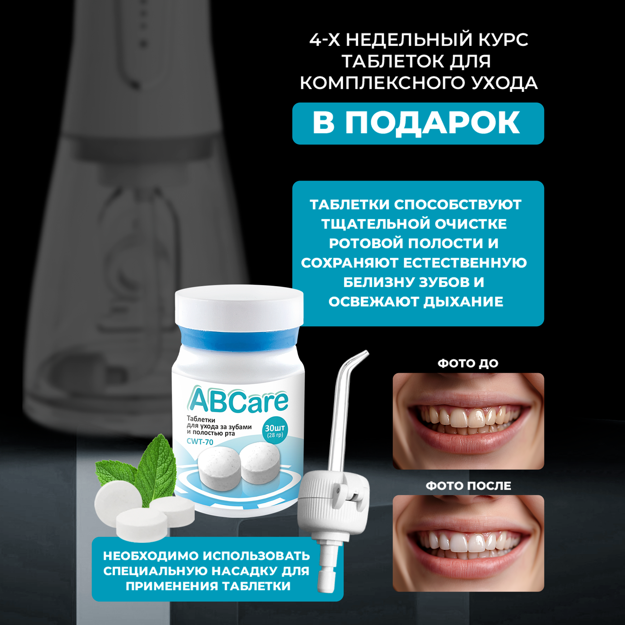Ирригатор для зубов, 6 насадок, 5 режимов, освежающие таблетки, ирригатор для полости рта, xiaomi, портативный, белый интересное: