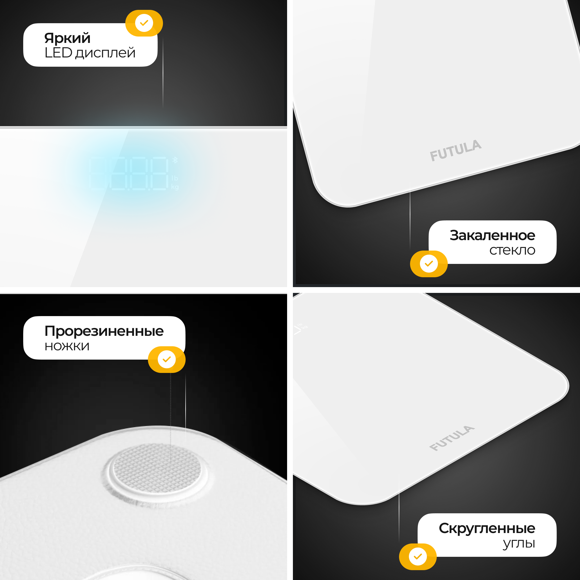 Весы напольные Futula Scale 1 белый, большой LCD дисплей
