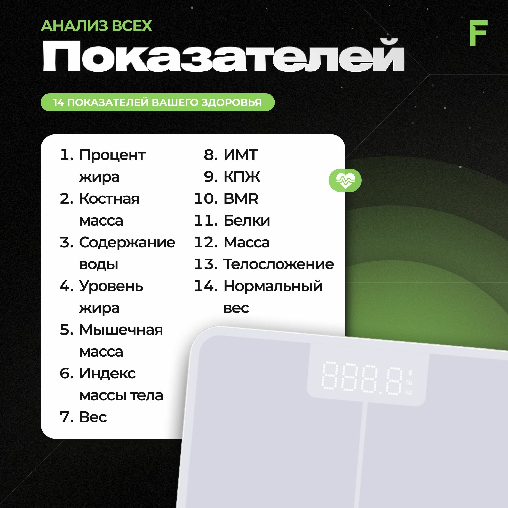 Умные весы напольные Futula Scale 6 белый, измерение 14 параметров тела
