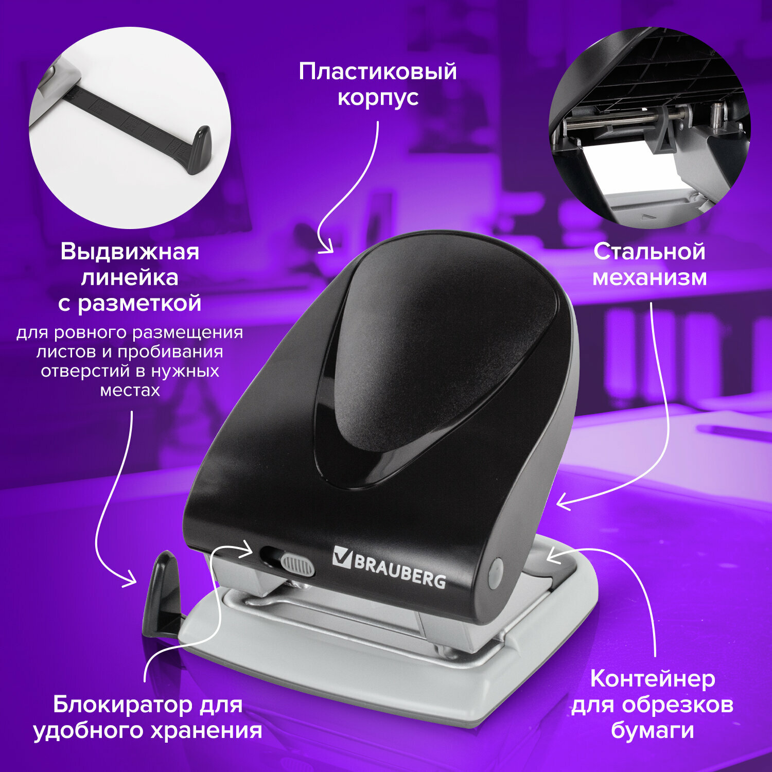 Дырокол BRAUBERG "G-Line", до 40 листов, черный, 224341 интересное: