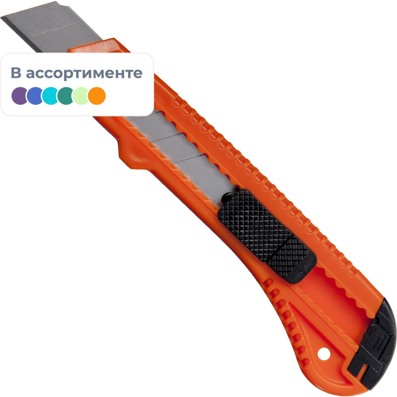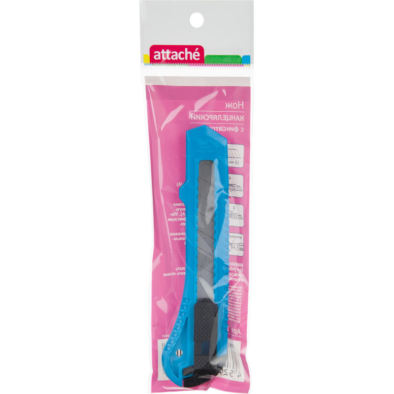 Нож канцелярский 18мм Attache с фиксатором, полибег, цв. интересное: