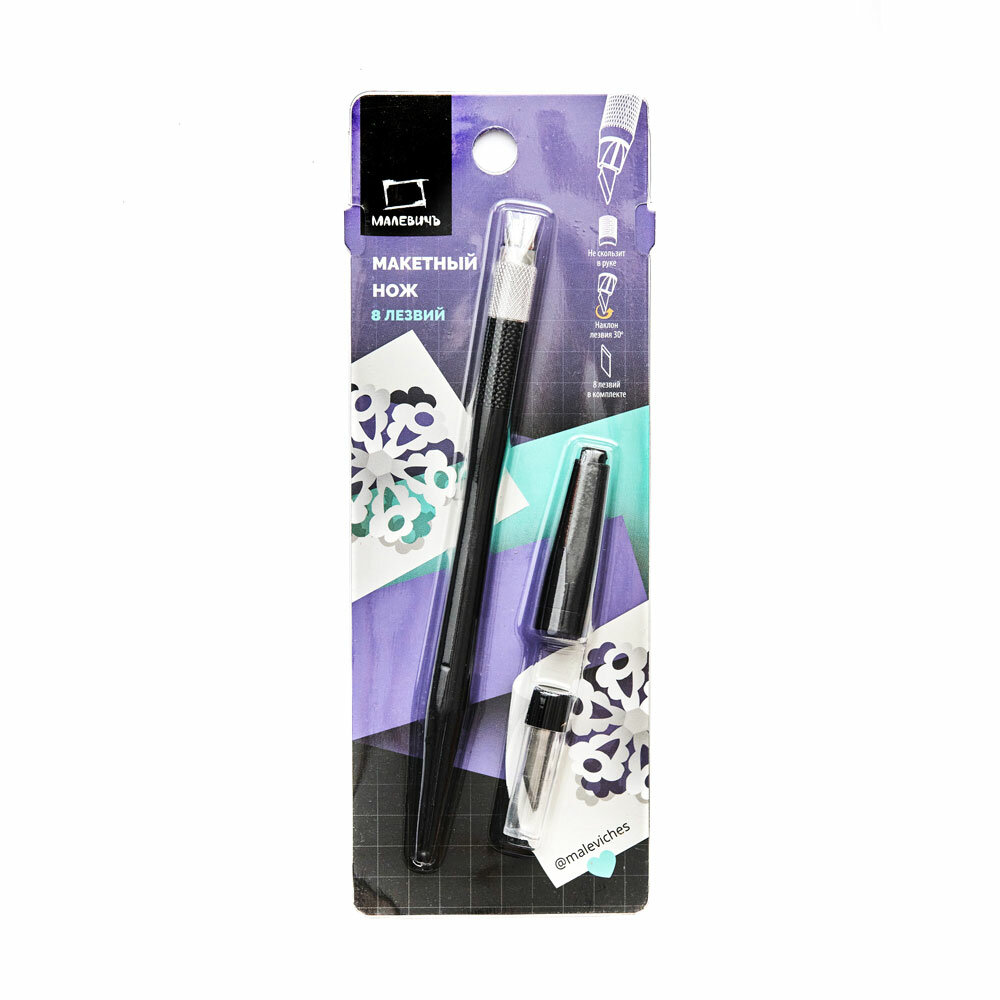 Макетный нож Малевичъ с 8 сменными лезвиями интересное:
