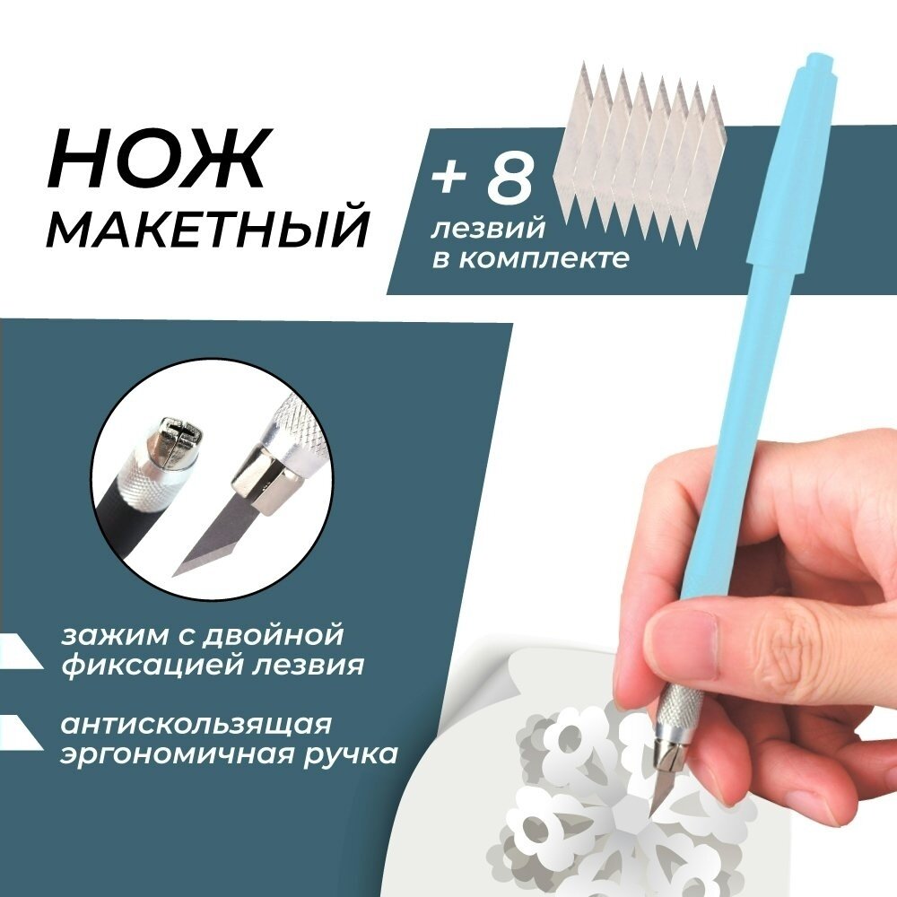 Макетный нож Малевичъ бирюзовый с 8 сменными лезвиями интересное: