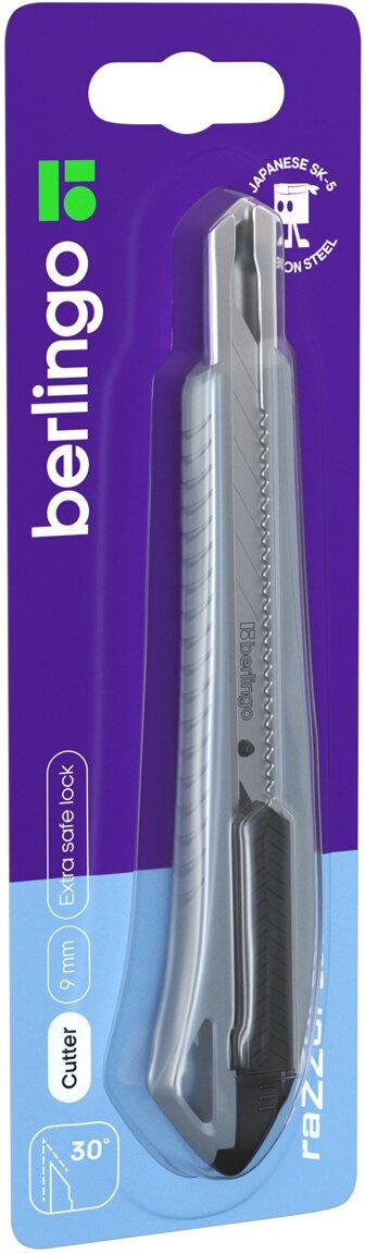 Купить Нож канцелярский 9мм Berlingo Razzor 200, auto-lock, металл. направл., серый, европодвес (BM4127_d)